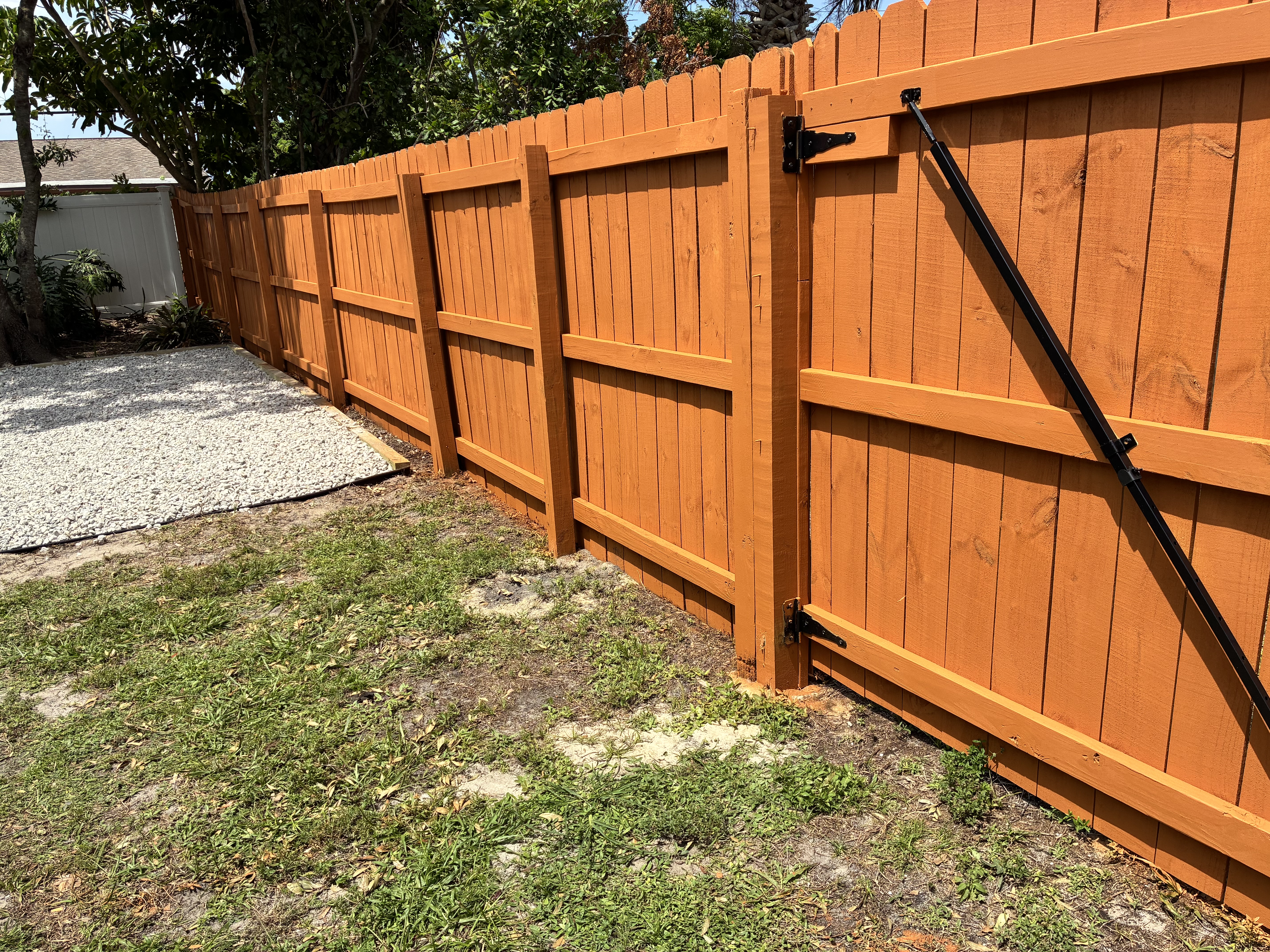 A freshly stained fence does more than improve curb appeal—it helps protect your investment from sun, rain, and everyday wear. Professional fence staining creates a rich, even finish that enhances the natural beauty of the wood while adding a layer of defense against moisture, fading, cracking, and rot. Regular fence staining can also extend the life of your fence and reduce the need for costly repairs or early replacement.